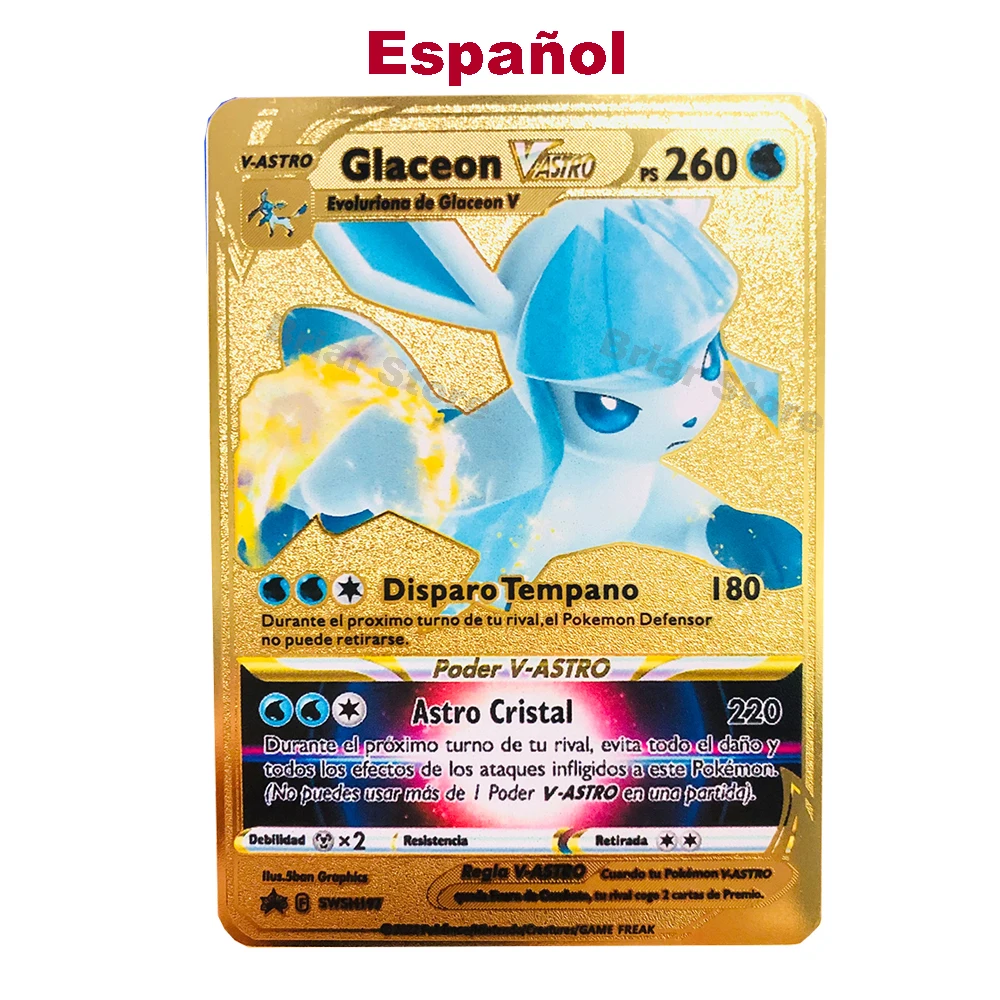 Spanish Game Pokemon Metal Iron Card Glaceon V Astro Gold Collection Game Holographic Metal Pokemon Card Glaceon 260hp Game Collection Cards Aliexpress